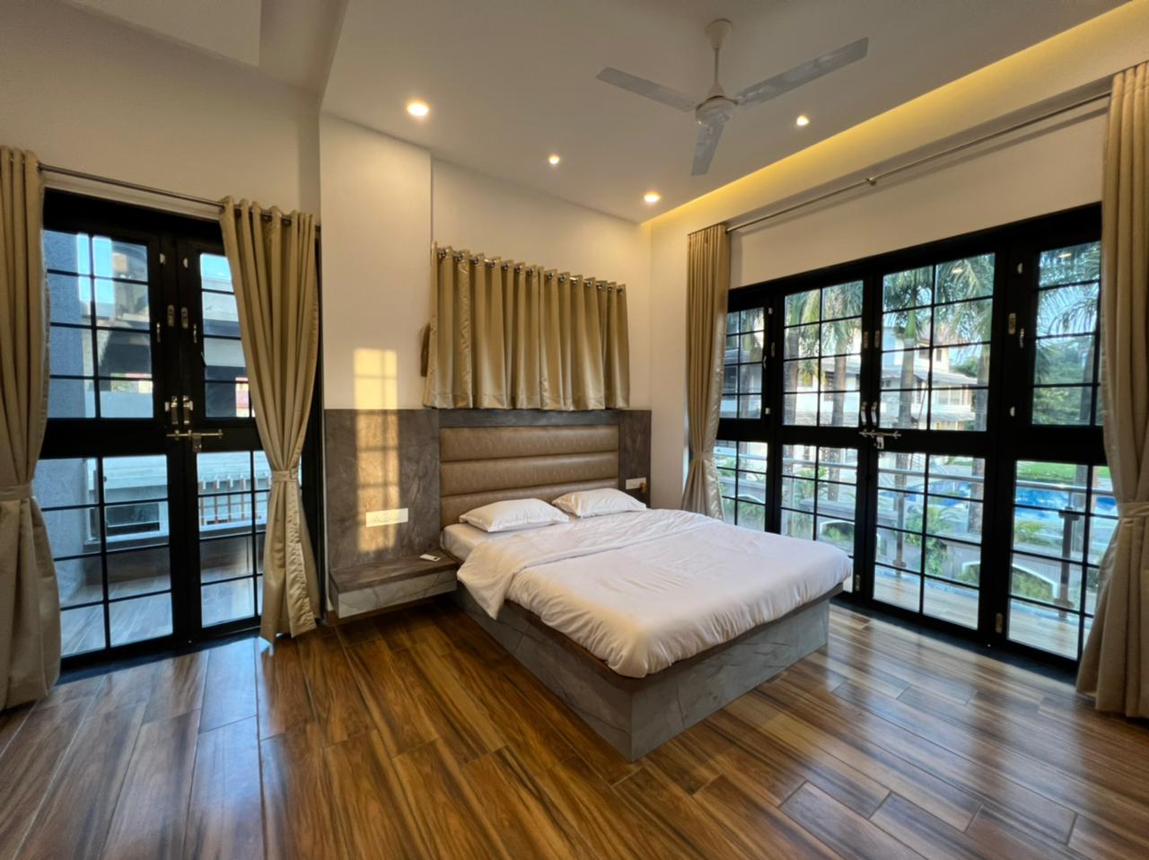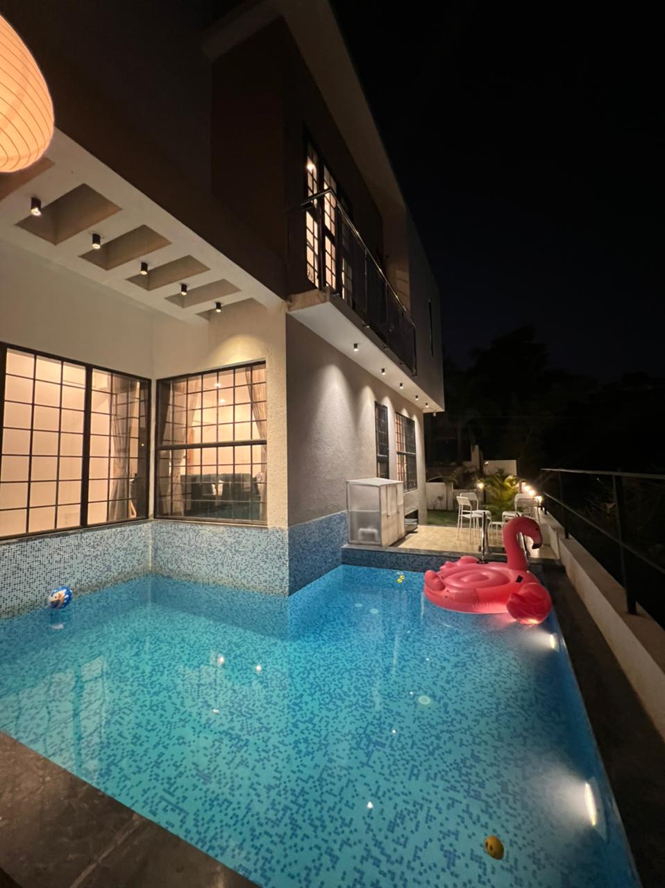 • Luxurious 3bhk – Accommodating up to 12-15 guests • Private swimming pool • Open sky Jacuzzi • Lounge / play area in the basement • Garden/ Lawn • Indoor games like snooker, carom etc. • Modern – Contemporary interiors with a home theatre system, a bathtub & sauna steam provisions • Free Wi-Fi