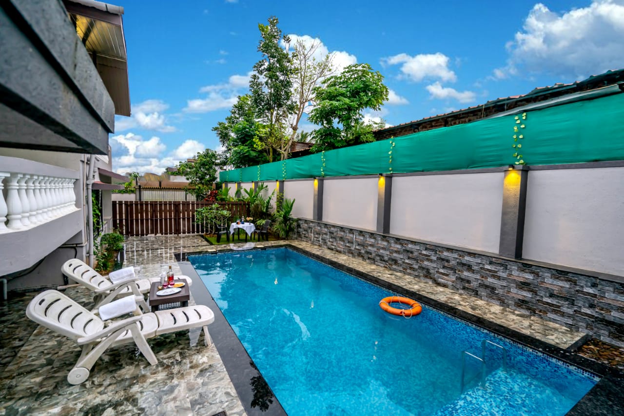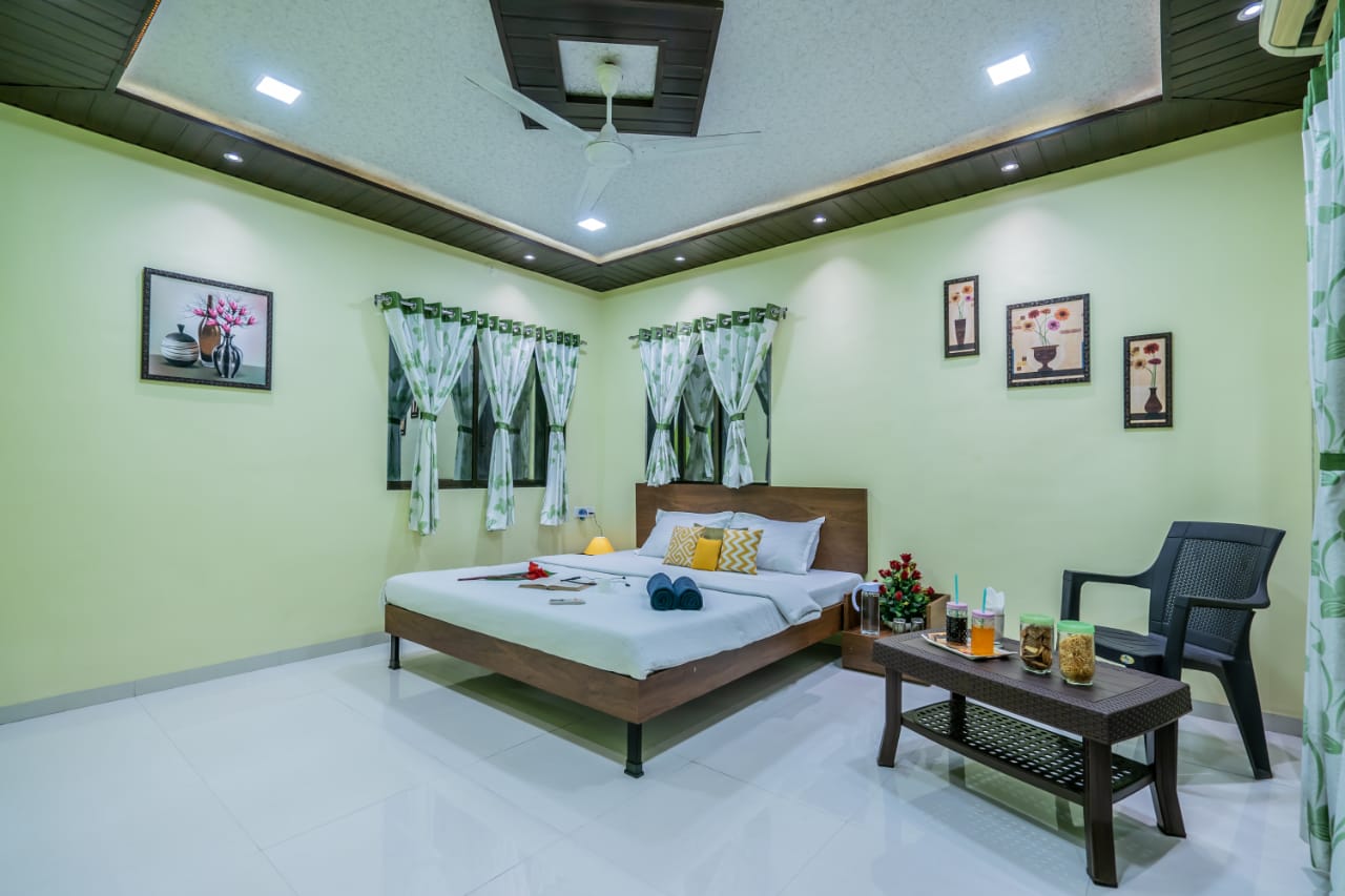 *9bhk Fully Furnished – Bedrooms with AC with full privacy -Balcony with artifical – Capacity upto 20 to 40 Pax – Pvt. Swimming Pool with full privacy – Chill out area – living room with open kitchen – TV and Music System – Geyser in all Bathroom -Changing room -Shower Room -7 Bathrooms – Inverter – Indoor Games – Carrom & Playing Cards – Parking Area
